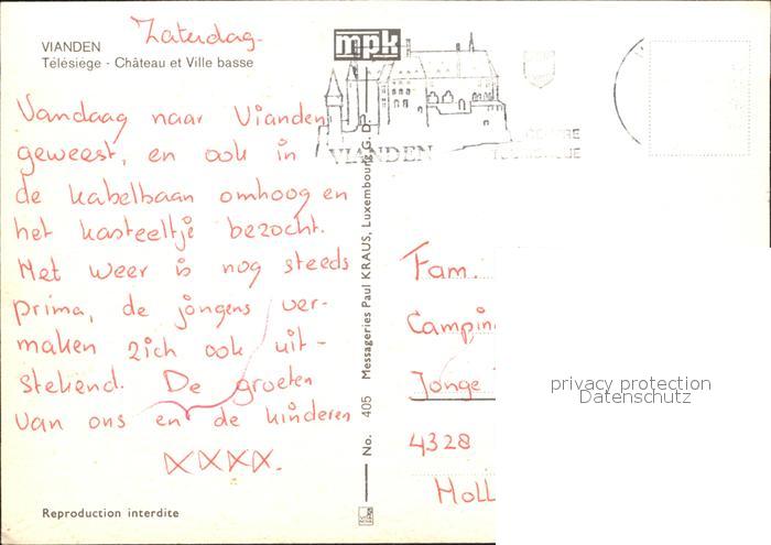 alte Postkarte Sessellift Vianden Telesiege Chateau et Ville basse postalisch gelaufen Erhaltung siehe scans