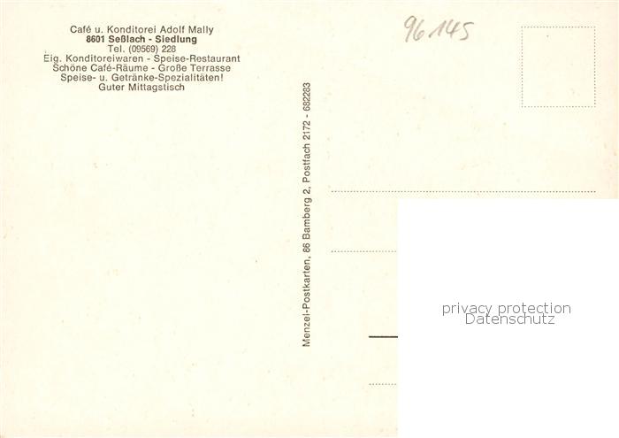 73867112 Sesslach Cafe Konditorei Adolf Mally Gaststube postalisch nicht gelaufen Erhaltung siehe scans [FriedD77] KatCode: 11110009473165