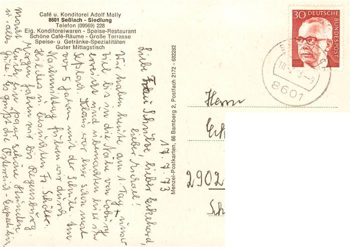 73887404 alte Postkarte Sesslach Cafe Konditorei Mally Terrasse postalisch gelaufen Erhaltung siehe scans [WerneD78] KatCode: 11110009473165