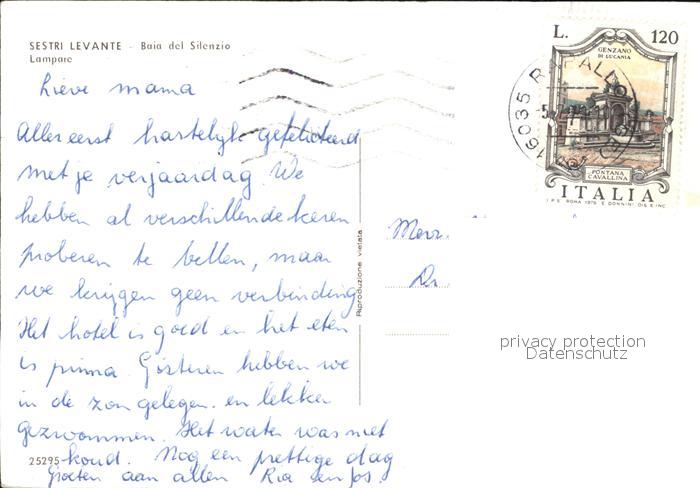 old postcard Sestri Levante Baia Silenzio Lampare postalisch gelaufen Erhaltung siehe scans