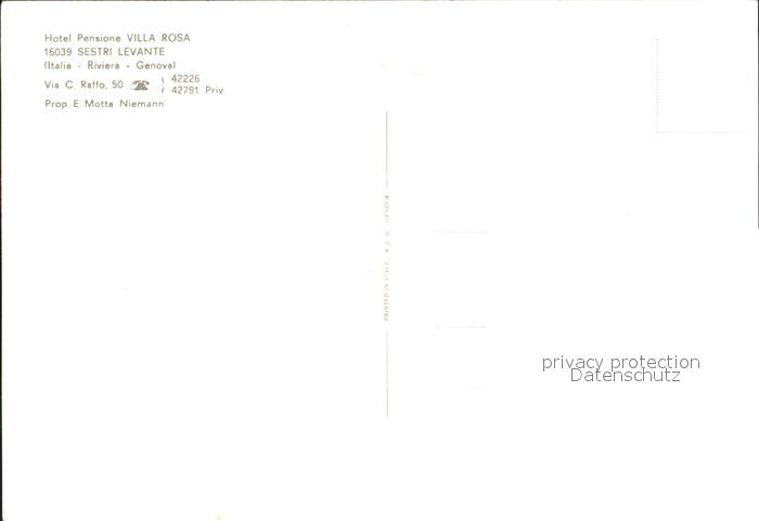 Sestri Levante Hotel Pensione Villa Rosa Riviera postalisch nicht gelaufen Erhaltung siehe scans