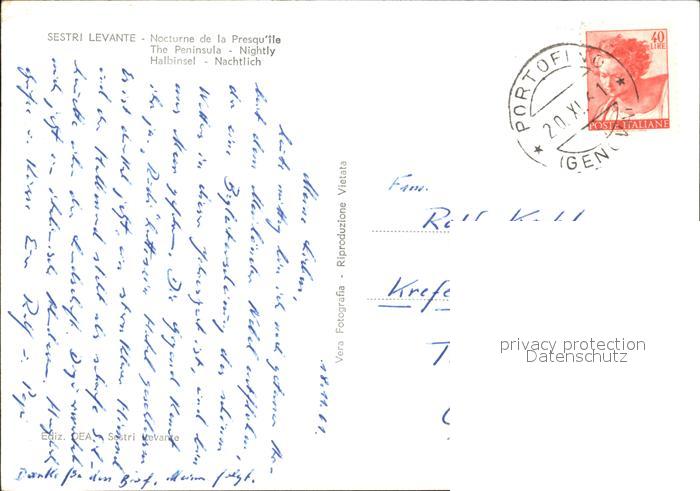 old postcard Sestri Levante Nocturne de la Presquile postalisch gelaufen Erhaltung siehe scans