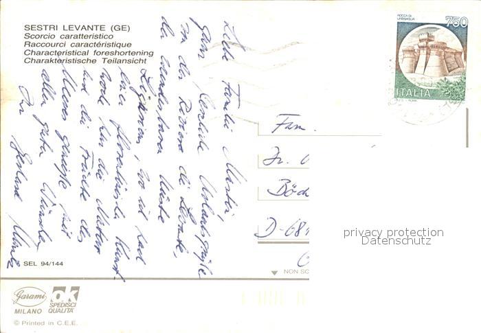 old postcard Sestri Levante Scorcio caratteristico Charakteristischer Winkel Hafen postalisch gelaufen Erhaltung siehe scans