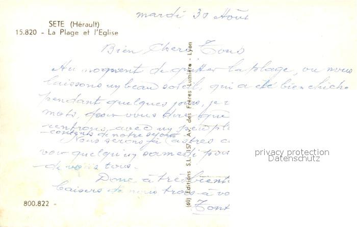 13541399 Sete Cette La plage et l’Eglise postalisch nicht gelaufen Erhaltung siehe scans [FriedD77] KatCode: 11170034334301