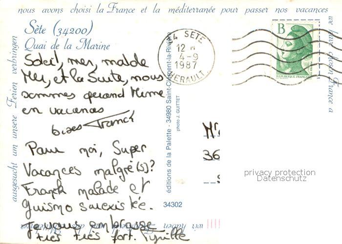 13660665 Sete Cette Quai de la Marine postalisch gelaufen Erhaltung siehe scans [WerneD78] carte postale Wern Katcode 11170034334301