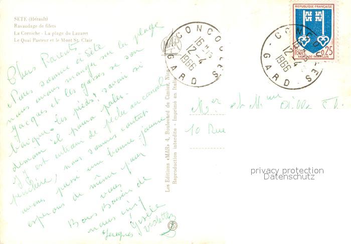 13589773 Sete Cette Ravaudage de filets La Corniche La plage du Lazaret Le Quai Pasteur et le Mont St Clair postalisch gelaufen Erhaltung siehe scans [WerneD78] carte postale Wern Katcode 11170034334301