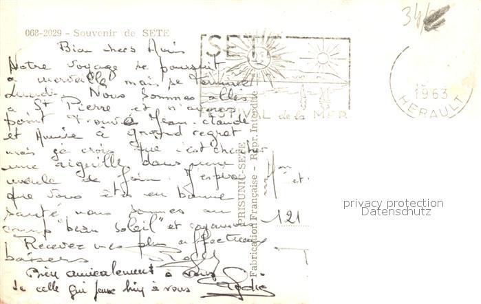 13535331 carte postale Sete Cette Souvenir de la ville Port Bateaux Phare Canal postalisch gelaufen Erhaltung siehe scans [FriedD77] KatCode: 11170034334301