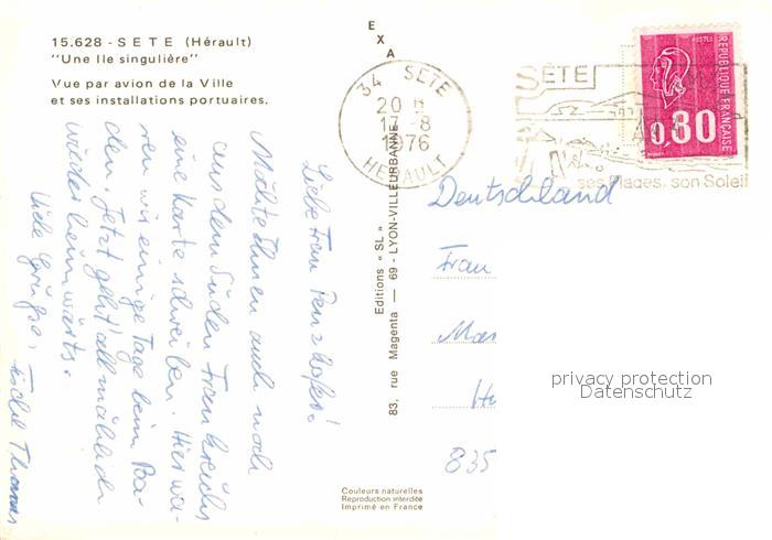 12899294 carte postale Sete Herault Fliegeraufnahme postalisch gelaufen Erhaltung siehe scans [NatalD47] KatCode: 11170034334301