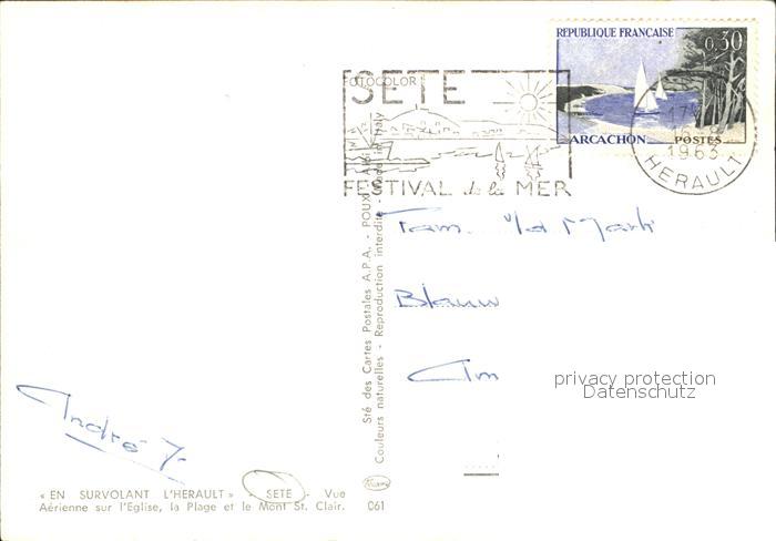 12463214 carte postale Sete Herault Vue aerienne sur Eglise la plage et le Mont St Clair postalisch gelaufen Erhaltung siehe scans KatCode: 11170034334301