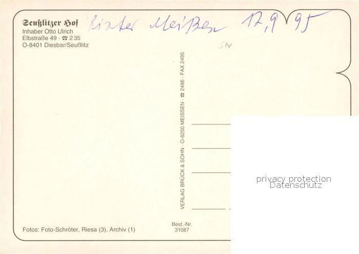 73658857 Seusslitz Hotel Restaurant Seusslitzer Hof Schloss Park postalisch nicht gelaufen Erhaltung siehe scans [FriedD77] KatCode: 11110014285190