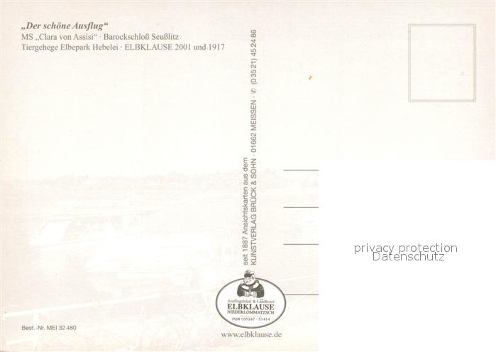 73663587 Seusslitz MS Clara von Assisi Barockschloss Seusslitz Tiergehege Elbepark Hebelei Elbklause postalisch nicht gelaufen Erhaltung siehe scans [WerneD78] KatCode: 11110014285190