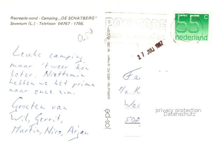 old postcard Sevenum Rekreatie oord De Schatberg postalisch gelaufen Erhaltung siehe scans [KathaD81]