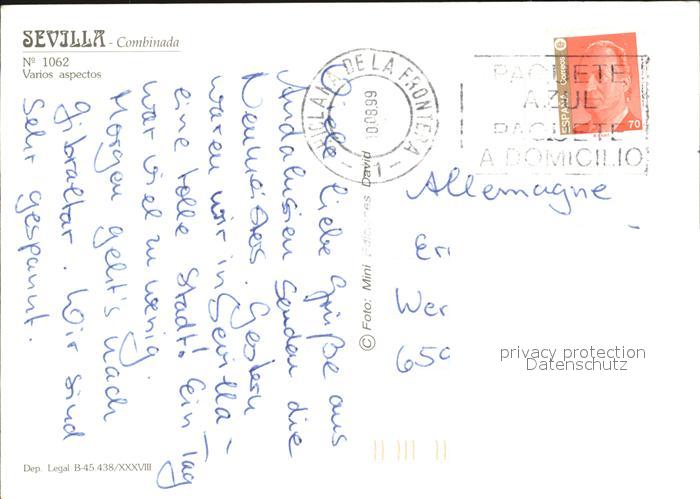 old postcard Sevilla Andalucia Alcazar Kathedrale Santa Cruz postalisch gelaufen Erhaltung siehe scans