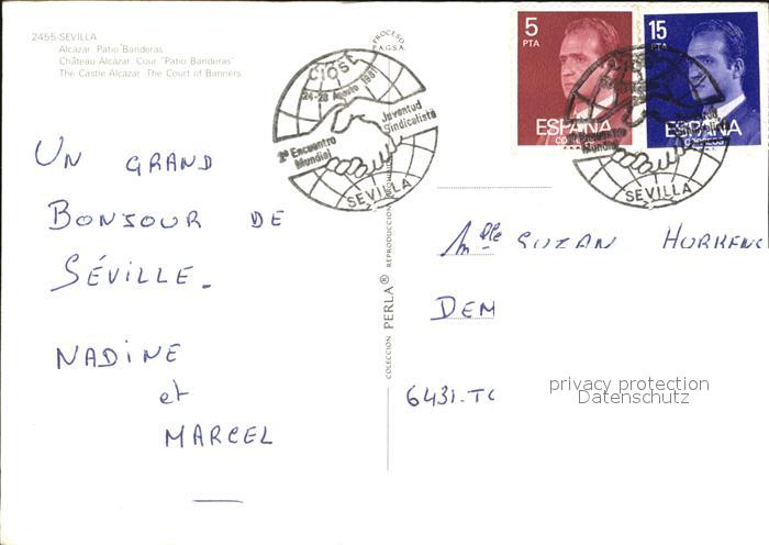 old postcard Sevilla Andalucia Alcazar Pateo Baridoras postalisch gelaufen Erhaltung siehe scans
