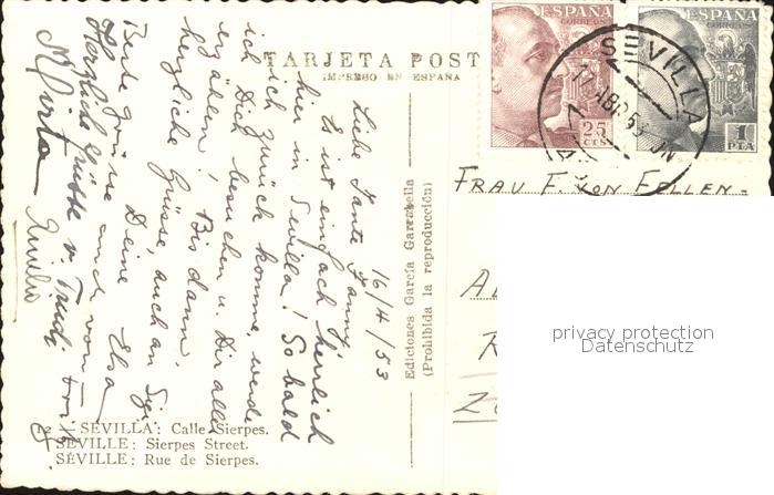 alte Postkarte Sevilla Andalucia Calle Sierpes postalisch gelaufen Erhaltung siehe scans
