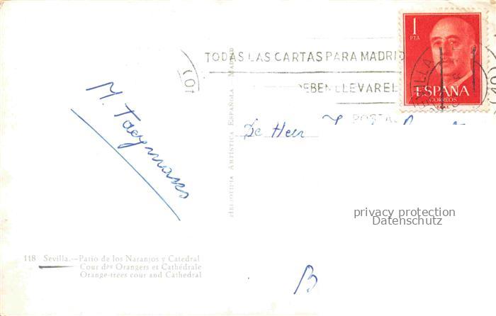 74135279 old postcard SEVILLA Andalucia ES Patio de los Naranjos y Catedral postalisch gelaufen Erhaltung siehe scans [FriedD77] KatCode: 11510