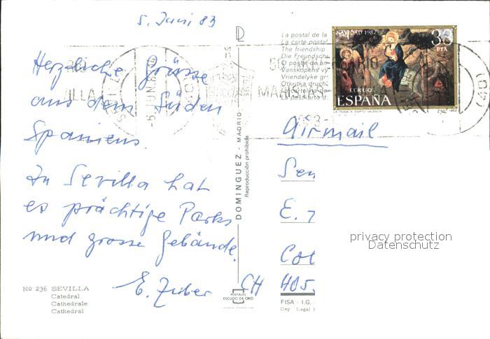 old postcard Sevilla Andalucia Kathedrale postalisch gelaufen Erhaltung siehe scans