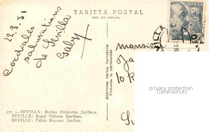 old postcard Sevilla Andalucia Royal Palaces Gardens postalisch gelaufen Erhaltung siehe scans [LiesaD40]