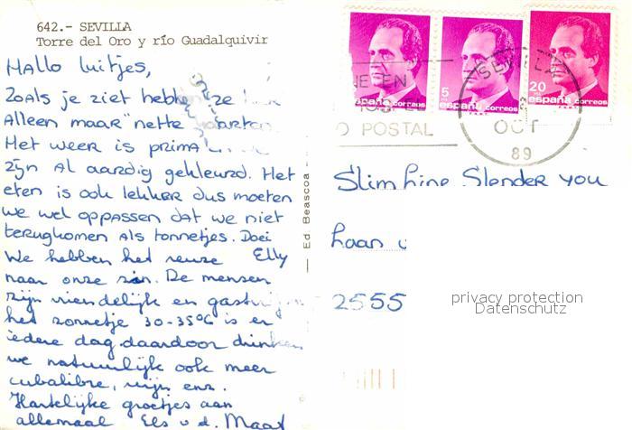 old postcard Sevilla Andalucia Torre del Oro Rio Guadalquivir de noche postalisch gelaufen Erhaltung siehe scans [FriedD77]