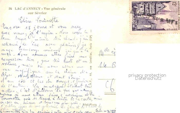 12754283 carte postale Sevrier Panorama Lac d Annecy et les Alpes postalisch gelaufen Erhaltung siehe scans [FriedD77] KatCode: 11170074174267
