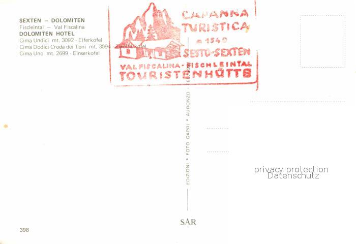 Sexten Sesto Suedtirol Capanna Turistica postalisch nicht gelaufen Erhaltung siehe scans [WerneD78]
