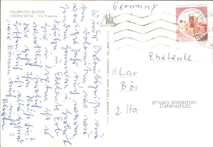 old postcard Sexten Sesto Suedtirol Fischleintal Zwolferkofel Elferkofel postalisch gelaufen Erhaltung siehe scans