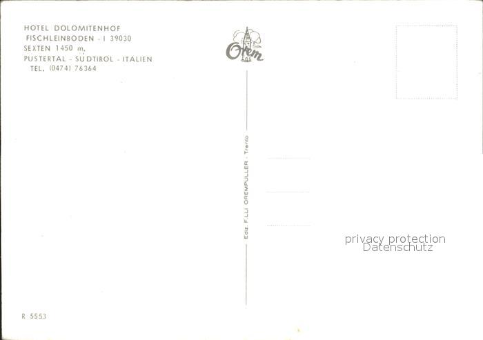 Sexten Sesto Suedtirol Hotel Dolomitenhof Fischleintal postalisch nicht gelaufen Erhaltung siehe scans