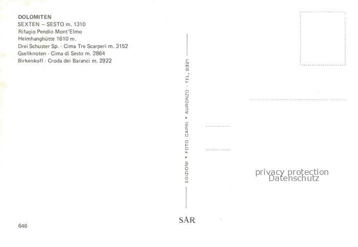 74110973 Sexten Sesto Suedtirol IT Rifugio Mont Elmo Drei Schuster Spitze postalisch nicht gelaufen Erhaltung siehe scans [WerneD78] KatCode: 11240