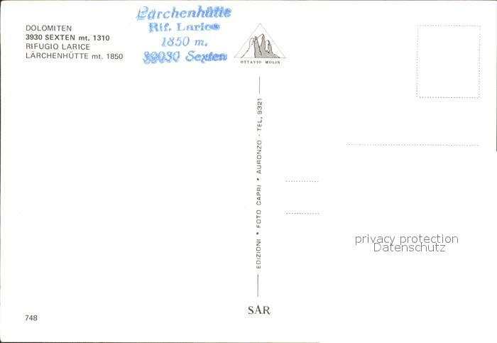 Sexten Sesto Suedtirol Laerchenhuette postalisch nicht gelaufen Erhaltung siehe scans