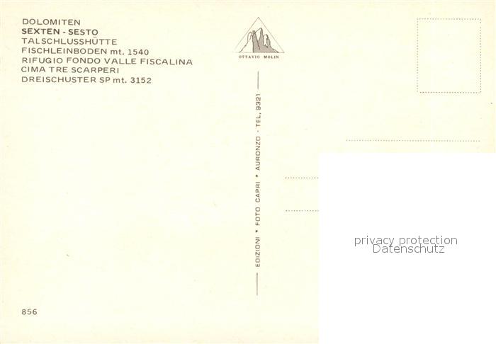 Sexten Sesto Suedtirol Talschlusshuette Fischleinboden postalisch nicht gelaufen Erhaltung siehe scans [WerneD78]