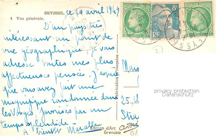 13490689 carte postale Seyssel Ain Vue Generale postalisch gelaufen Erhaltung siehe scans [FriedD77] KatCode: 11170001101407