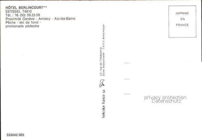 12514453 Seyssel Haute-Savoie Hotel Berlincourt postalisch nicht gelaufen Erhaltung siehe scans KatCode: 11170074374269