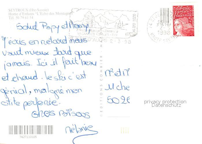 13340058 carte postale Seytroux Home d Enfants L’Echo des Montagnes en hiver postalisch gelaufen Erhaltung siehe scans [FriedD77] KatCode: 11170074474271