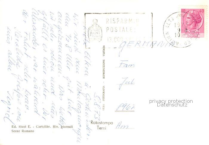 old postcard Sezze Latina Panorama Piazza IV November e Via Roma Giardini pubblici Fontana dei Leoni in Piazza IV November postalisch gelaufen Erhaltung siehe scans [WerneD78]