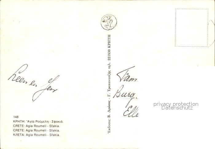 old postcard Sfakia Blick vom Meer Bucht Teilansicht postalisch gelaufen Erhaltung siehe scans