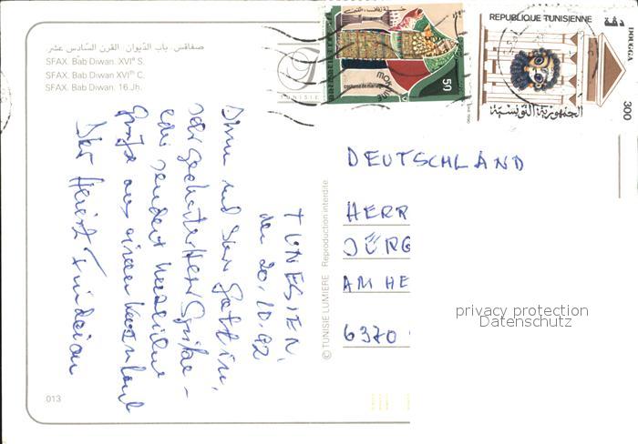 old postcard Sfax Tunesie Bab Diwan postalisch gelaufen Erhaltung siehe scans