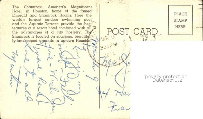 11605678 old postcard Shamrock Texas Houston Zeichnung postalisch gelaufen Erhaltung siehe scans KatCode: 14140460000000