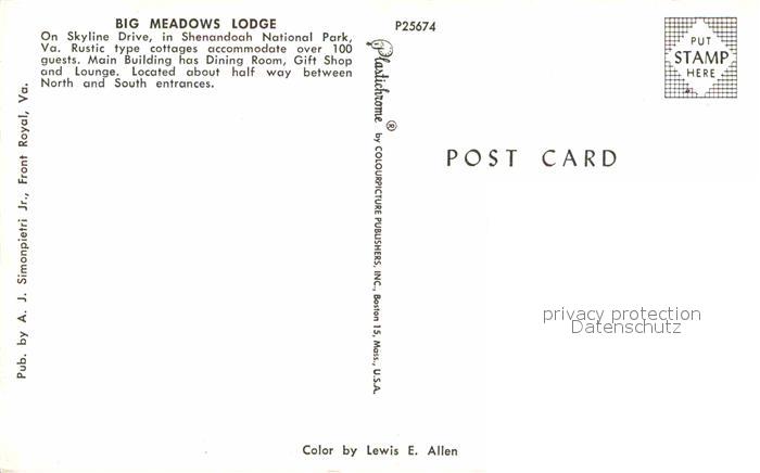 72842149 Shenandoah National Park Big Meadows Lodge postalisch nicht gelaufen Erhaltung siehe scans [FriedD77] KatCode: 14140490000000