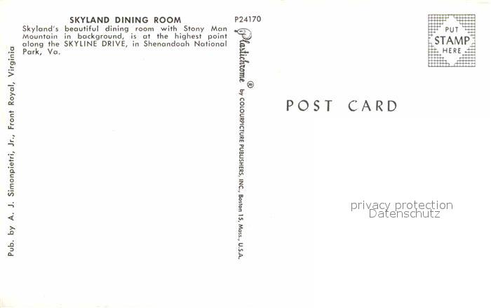 72844528 Shenandoah National Park Skyland Dining Room postalisch nicht gelaufen Erhaltung siehe scans [KathaD81] KatCode: 14140490000000