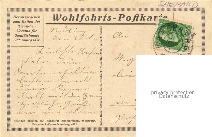 74134392 alte Postkarte Shepard Schaeferhund Deutscher German allemand– Sanitaetshund postalisch gelaufen Erhaltung siehe scans [IrynaD87] KatCode: 22540000003000