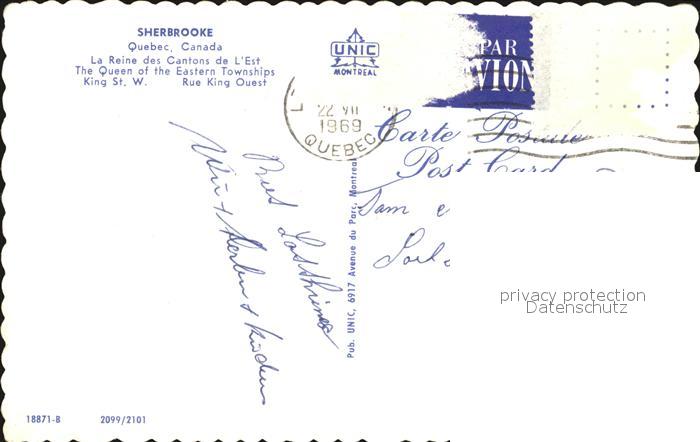 old postcard Sherbrooke The Quenén of the Eastern Townships King Street West postalisch gelaufen Erhaltung siehe scans