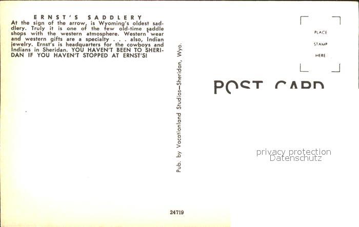 11688359 Sheridan Wyoming Ernst’s Saddlery Westernwear postalisch nicht gelaufen Erhaltung siehe scans KatCode: 14140530000000