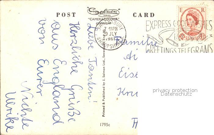 old postcard Shrewsbury The Square postalisch gelaufen Erhaltung siehe scans