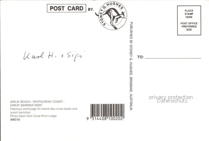 Shute Harbour Airlie Beach Whitsunday Coast postalisch nicht gelaufen Erhaltung siehe scans