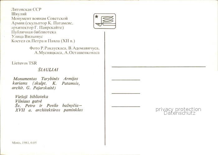 Siauliai Denkmal Kirche postalisch nicht gelaufen Erhaltung siehe scans