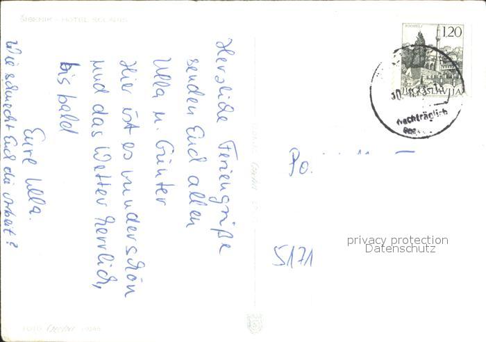 old postcard Sibenik Fliegeraufnahme Hotel Solaris postalisch gelaufen Erhaltung siehe scans