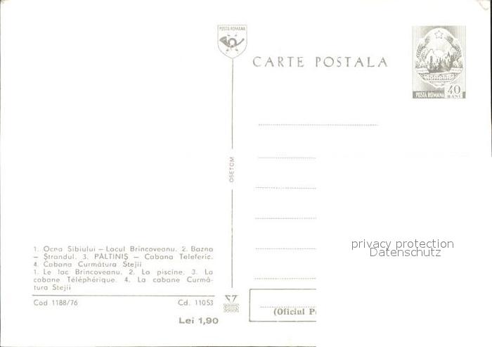 Sibiu Hermannstadt Paltinis Cabana Teleferic Curmatura Stejii postalisch nicht gelaufen Ganzsache (eingedruckte Briefmarke) Erhaltung siehe scans