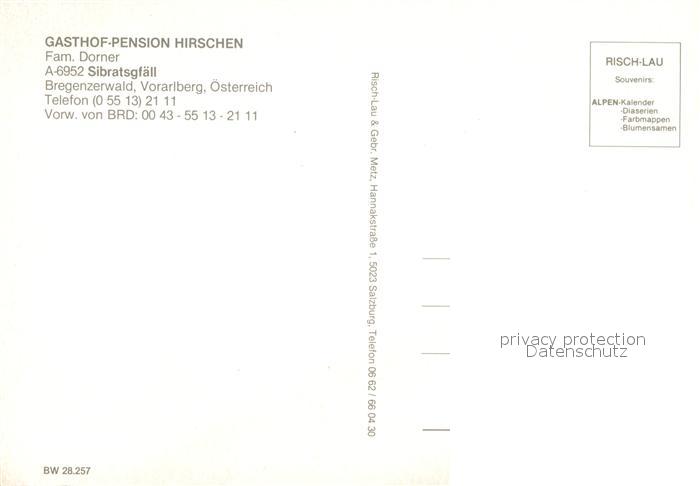 73236932 Sibratsgfaell Vorarlberg Gasthof Hirschen postalisch nicht gelaufen Erhaltung siehe scans [KathaD81] KatCode: 11390341080237