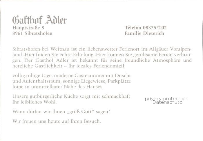 72312512 Sibratshofen Gasthof Adler postalisch nicht gelaufen Werbe-Etikett (keine Postkarte) Erhaltung siehe scans KatCode: 11110009780144
