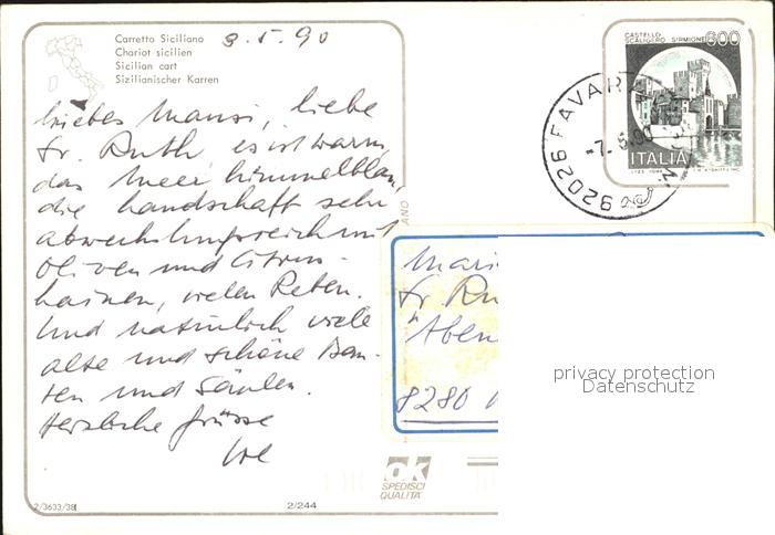 old postcard Sicilia Carretto Siciliano postalisch gelaufen Erhaltung siehe scans